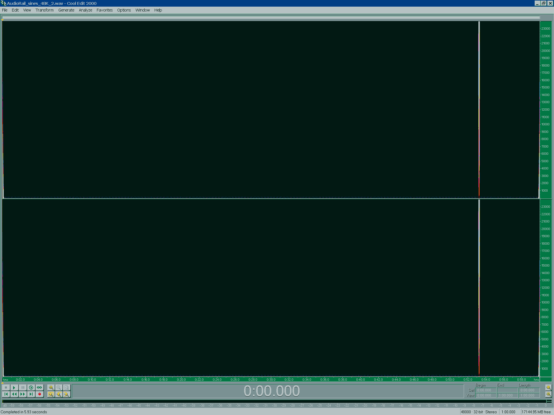 7040 Hz sine wave at 48K for 10 seconds: Through AudioRail
